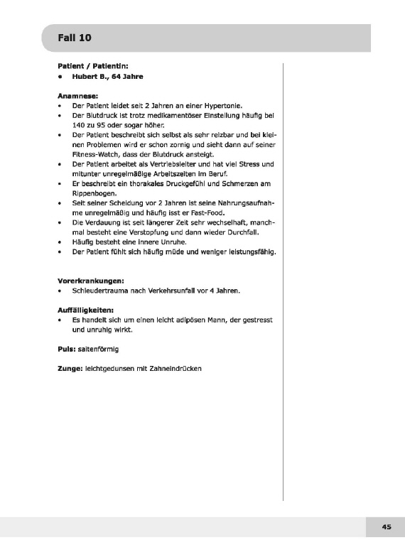 - eine Seite mit der Fallbeschreibung und genügend Platz für die diagnostischen Ideen des Lesers