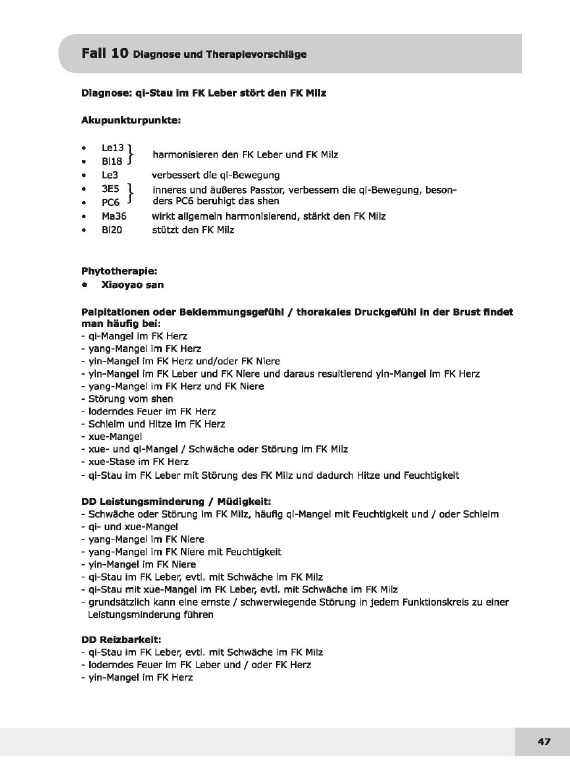 - Diagnosestellung, Auswahl und Erklärung der wichtigen Akupunkturpunkte sowie Phytotherapie-Vorschläge