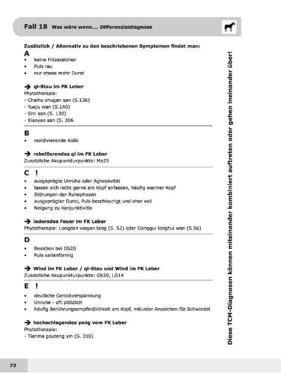Der Leser hat die Möglichkeit, auf der ersten Seite jeder Fallbeschreibung eigenständig eine Analyse in Sinne der TCVM vorzunehmen.