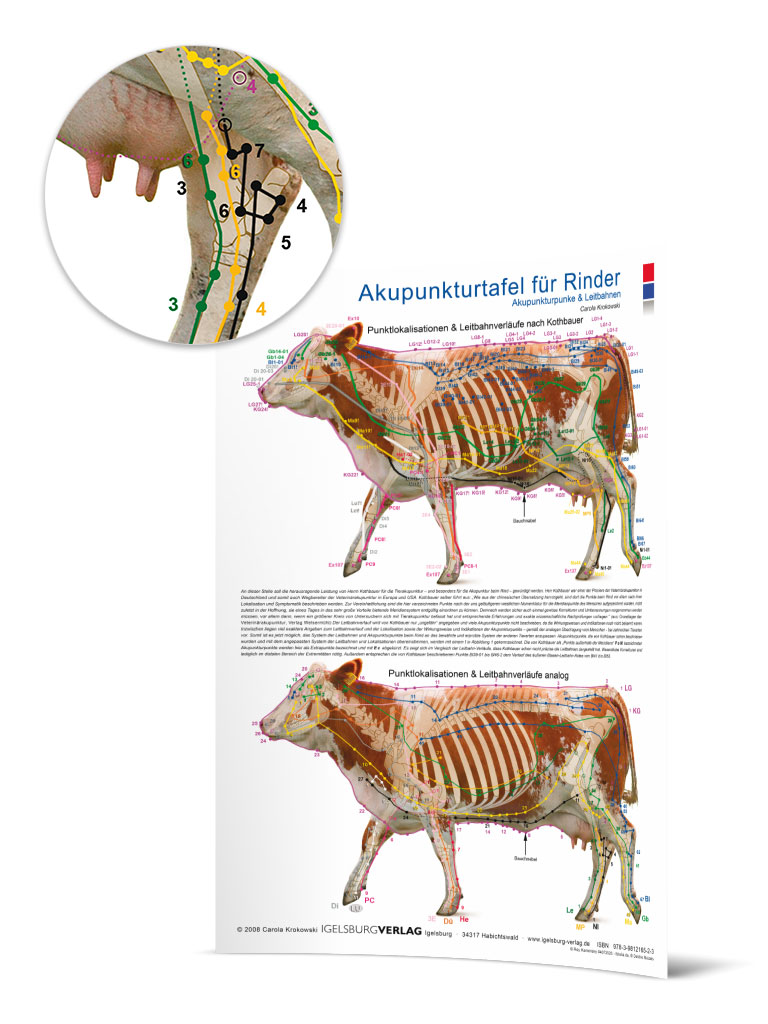 Akupunkturtafel Rind Die übersichtlichen Lehrtafeln zeigen die Akupunkturpunkte und Leitbahnen beim Rind. Autor Carola Krokowski Verlag Igelsburg VERLAG 2009Ausstattung 1 farbiges Poster 60 x 84 cmISBN 9783981216523 Aktion war erfolgreich Das hat leider nicht geklappt. Warenkorb anzeigen Zur Kasse gehen Weiter einkaufen 29,95 EUR incl. 7% USt. Anzahl: Poster A1 In den Warenkorb